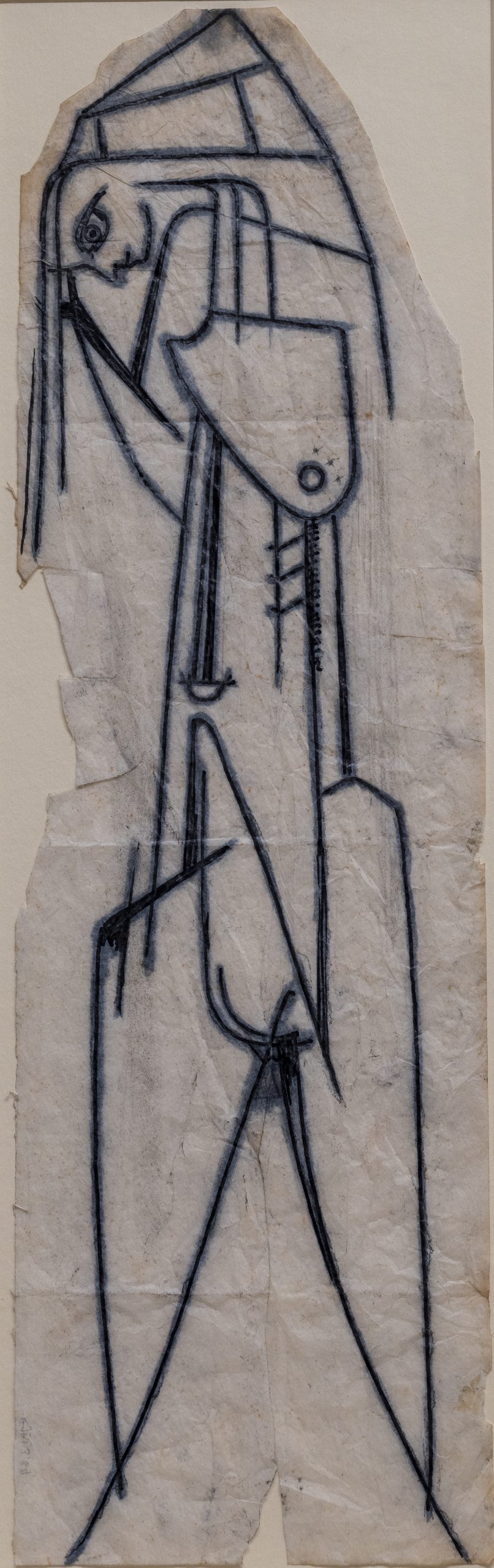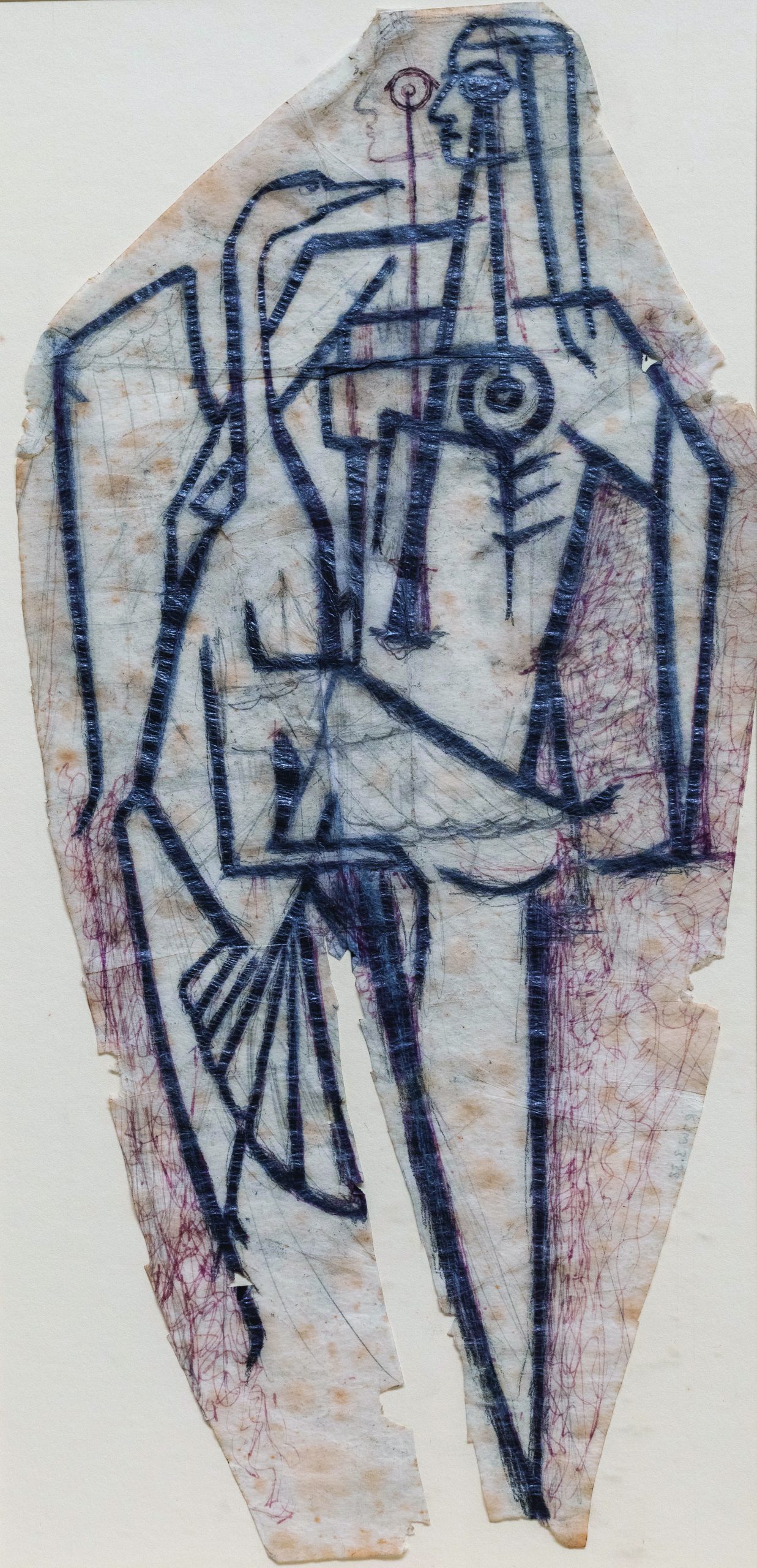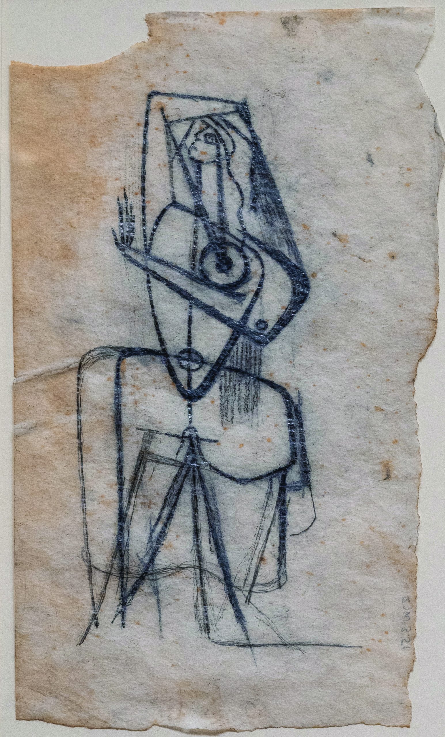 The decoration of each pot was elaborately considered. Washington would tape tracing paper to the pot, draw onto it and remove it to refine the drawing on the reverse before tracing the improved design back onto the pot. The tracing paper gets placed on the pot many times, to transfer the image before the oxide gets brushed on before glazing.